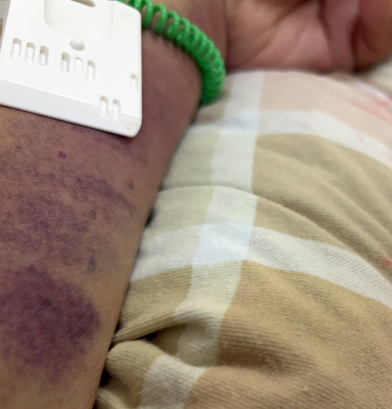 食い物の写真も出てきたし落ち着いたのか?だけど左腕はこんな色です。それもこれも助かった証さ。