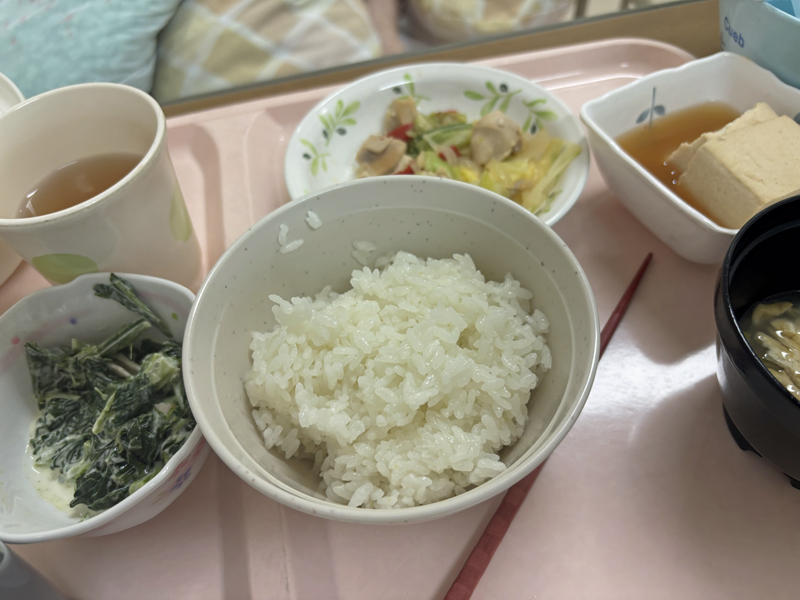 月曜日の退院はほぼ確定。この日の食事の卵焼きは印象に残った。コストが厳しいなか、味噌味で工夫が成されていた。先が見えてきた土曜日だ。